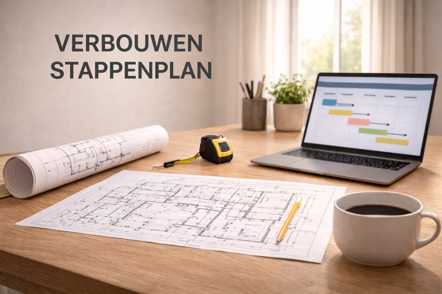 Een verbouwing lijkt vaak één project, maar in de praktijk is het een ketting van beslissingen: scope, budget, planning, regels, aannemer, materialen, uitvoering en oplevering. Als je die ketting in de verkeerde volgorde doet, koop je vertraging en extra kosten. Dit stappenplan is bedoeld als “routekaart”: je weet wat je volgende stap is, wanneer je keuzes moet maken en waar je de meeste fouten kunt voorkomen.